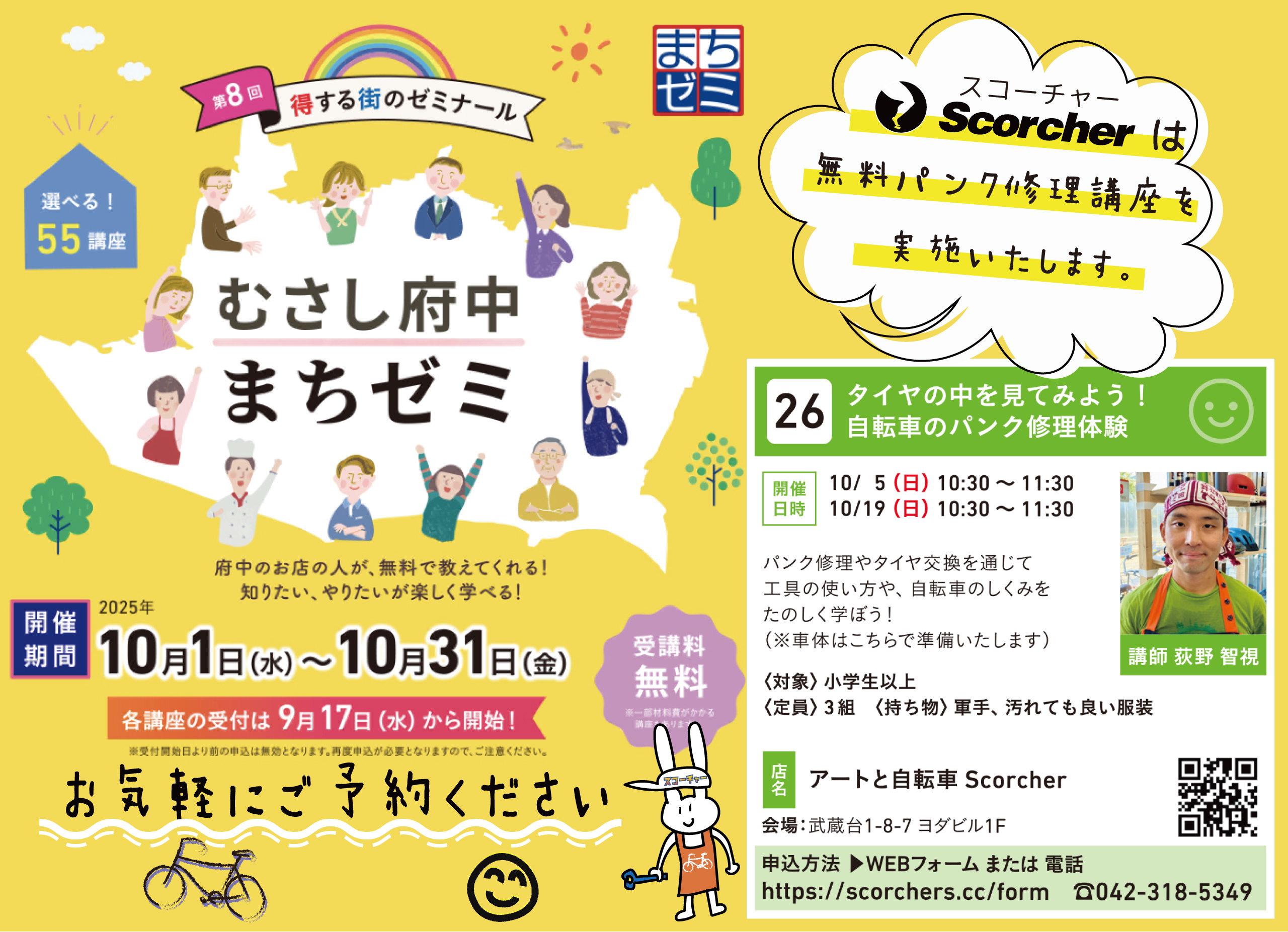 アートと自転車 scorcher🚲 東京都府中市武蔵台に4/12に開店⭐️ シティサイクル、電動自転車、クロスバイクetc…修理のご相談はお気軽にどうぞ⭐️ 東京都府中市武蔵台1-8-7ヨダビル1F ☎︎042-318-5349 営業時間⏰10:30〜19:00(日曜17:30まで) 定休日🌴月・水